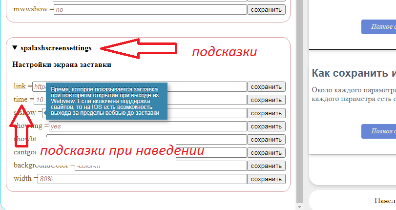 В этой админ панели на каждом шагу есть подсказки. Просто наведите курсор на поле с параметром и вы увидите что он означает. Конечно названия вроде "showimg" могут сбить с толку, но если обратить внимание что он находится в разделе Заставка (SplashScreen), то станет понятно что он отвечает за какую-то настройку экрана заставки. А если навести на этот параметр курсор, то вы увидите, что именно делает этот параметр (в данном случае он управляет временем отображения заставки, и если поставить 1 - то вы отключите загрузочный экран).